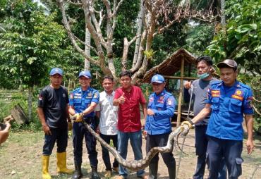 Heboh...!!! Kemunculan Ular Piton Sepanjang Empat Meter di Tengah Pemukiiman Warga Pematang Sawa